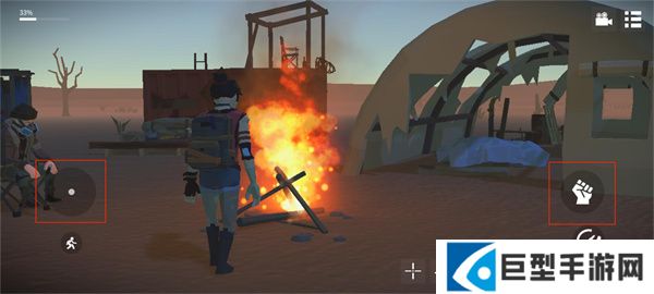 1、进入死亡荒地生存游戏后,左边按钮操控任务移动,右边为进攻;