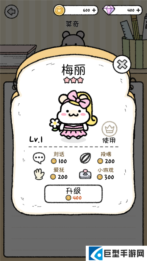 1、支持对仓鼠角色进行升级,与其对话,投喂等等。