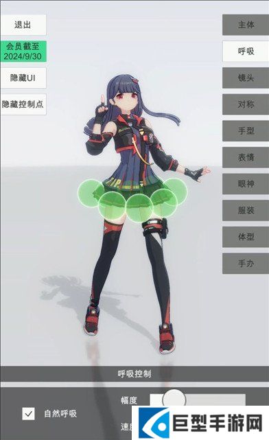 2、选择呼吸,玩家可以调整手办模特的动态呼吸呈现幅度。