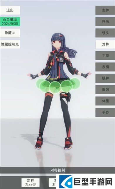 4、选择对称,可以调整手办左右对称的效果,操作更方便。