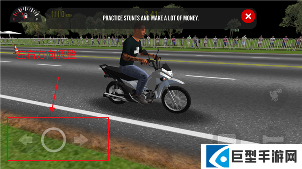 1、这款游戏是用虚拟按键进行操作的,每个按键都对应了驾驶摩托的的动作。