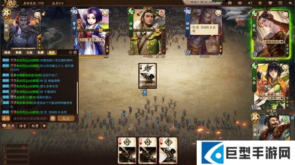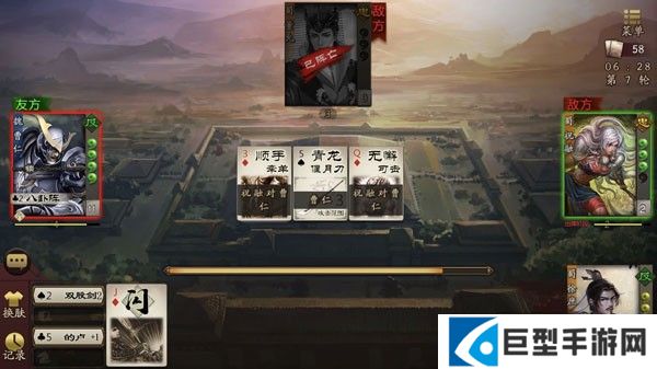 3、选择完角色之后,玩家获得系统随机给予的卡牌,通过卡牌的角逐来判定胜负。卡牌的数量一般分为几种,分别是锦囊、杀、闪以及血量回复,
