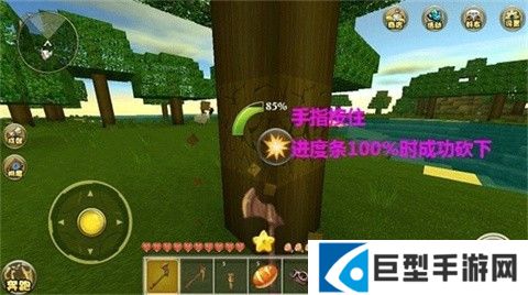 虚拟摇杆和按钮控制角色移动,触摸屏幕实现挖掘。