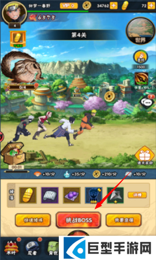 3、点击下方的修行挑战各种BOSS,获取装备资源养成角色逐渐变强