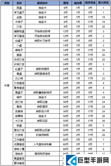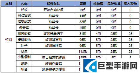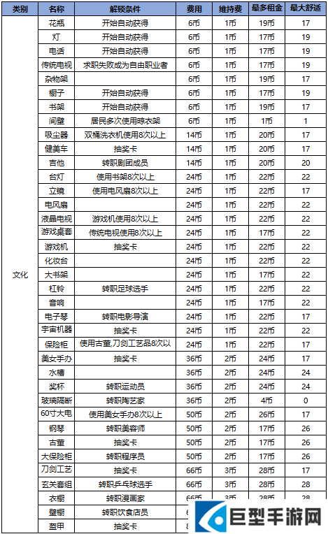 小编为大家收集了【所有家具的解锁条件、建造成本以及它们能带来的效益】供大家参考。