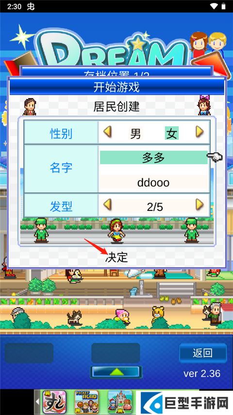 3、创建自己的角色性别、名字、发型,点击决定;