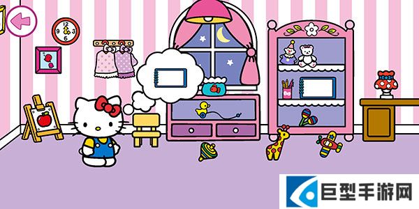 5、然后凯蒂猫会提出自己的要求并以【气泡】显示出来,如画板、玩具等。