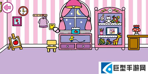 4、选择之后会进入到一个新的场景,随意点击场景内的任何玩具给凯蒂猫玩,使得最上方的【进度条】变满。