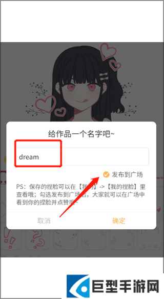 2、在跳出的页面给作品命名,勾选发布到广场选项就可以发布自己的作品了;
