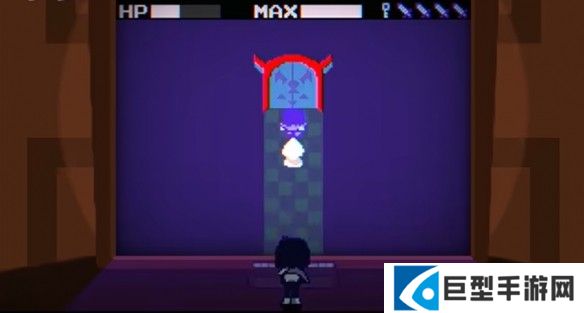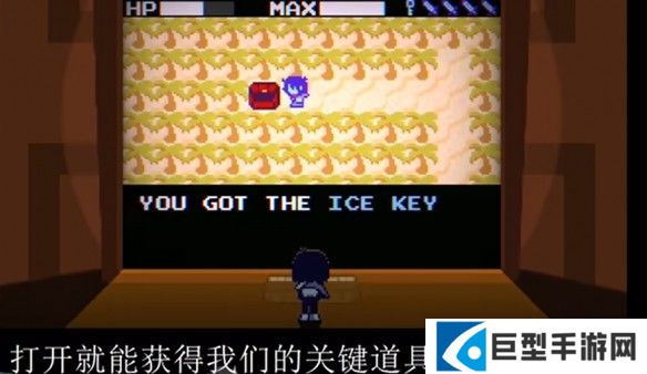 6、看到白色的地板后,找到有着游戏图标的门口,用之前红色宝箱里面的道具进行打开。