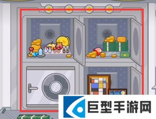 来到银行二楼,打开保险柜,根据图形找到钻石,红心,星星以及贝壳并依次放入,保险柜就会打开,里边有很多宝物。