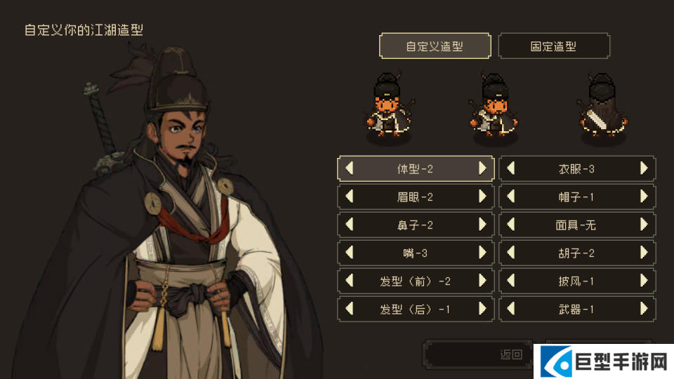 3、你可以自定义你的江湖造型,然后点击下一步;