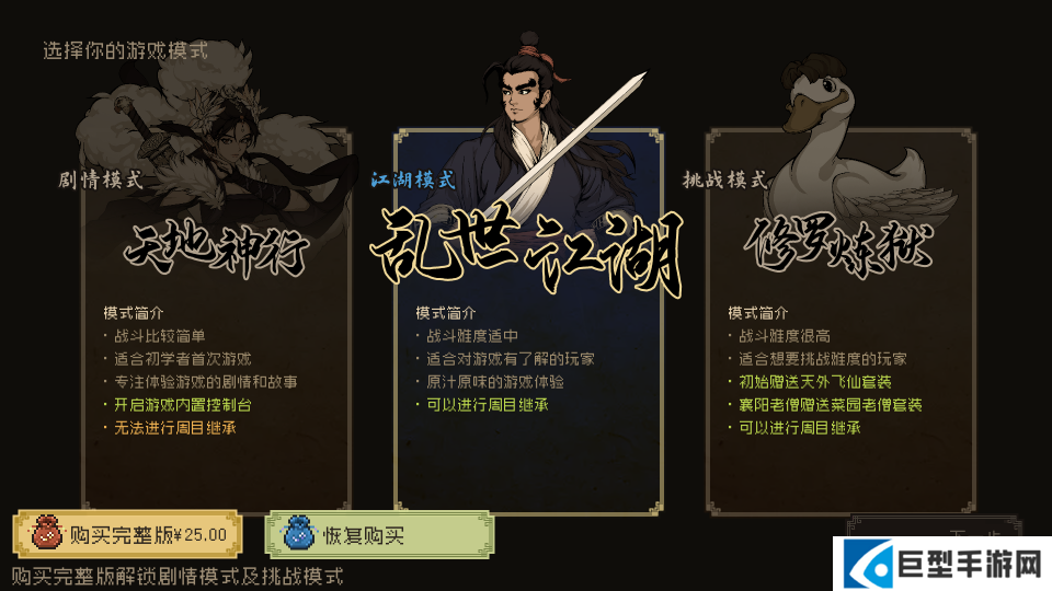 1、下载安装好大江湖之苍龙与白鸟手游,运行游戏,点击新的游戏;