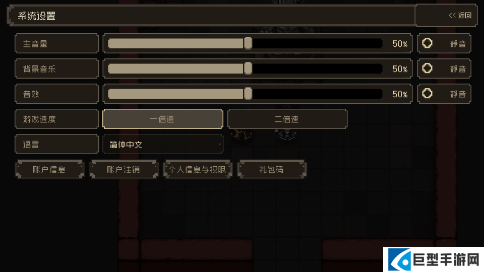 9、点开系统设置,可以设置主音量、背景音乐、音效、游戏速度等等。