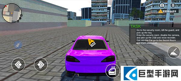 5、进入车辆之后,点击左下角控制方向,右下角控制车辆的前进和后退;