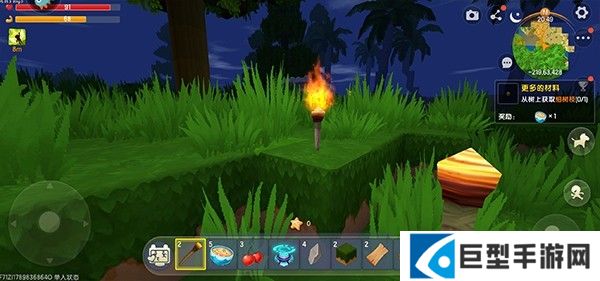 3、进入游戏之后,右上角有任务提示,根据任务提示收集需要的材料;