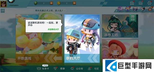 1、第一步进入到游戏大厅之后,有四种游戏模式可以选择,分别自建房间、联机玩法、迷你工坊、我的家园;