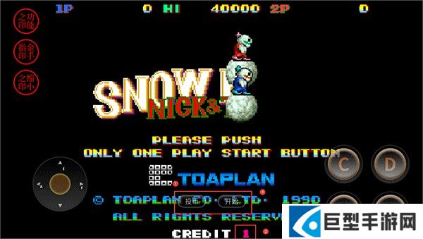 3、设置完成后返回游戏开始界面,先点击投币,待CREDIT显示数字1时,再点击开始即可进入游戏
