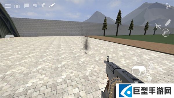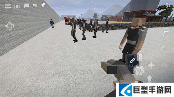 4、点击右边“手枪”按钮拿枪,可以让角色切换到持枪状态,中心用于开枪,+号可以新增靶子角色。