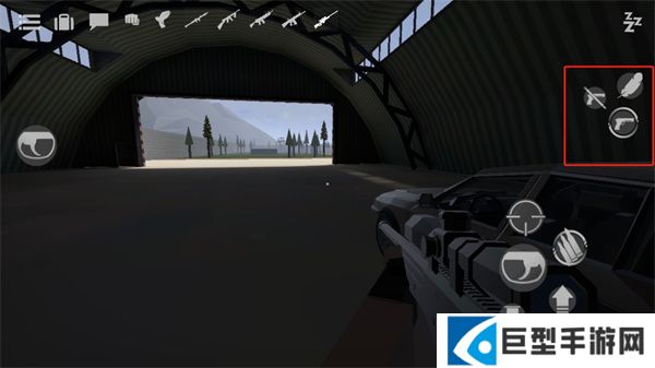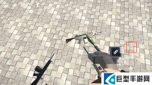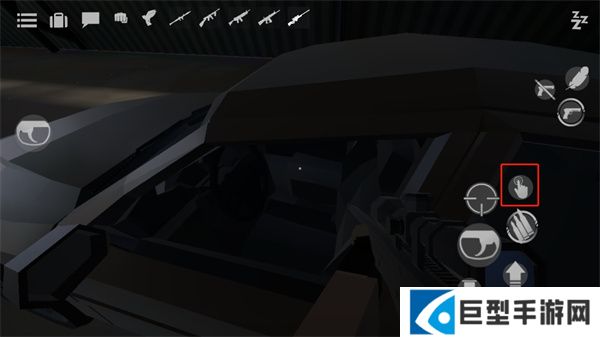 1、想要拿枪就必须先找到一把枪,找到枪后需要将准心放到枪上,这时屏幕左边会出现一个手指按钮,按住手指按钮即可拾取;