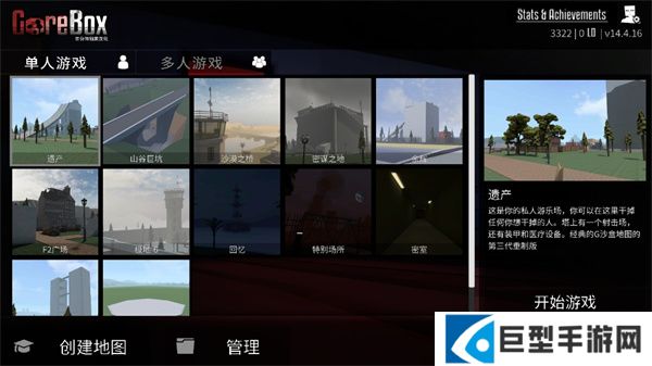 2、选择不同主题和环境的地图世界,选好地图后依旧点击开始游戏进入地图。游戏支持单机和联网,可以在不同的场景游戏