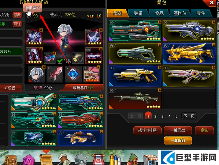 3、在背包中你可以看到角色上有着一个“领取奖励”图标,点击一下