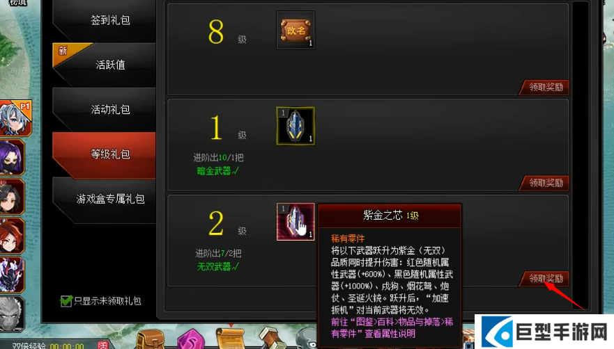 4、然后在礼包界面你就能领取对应的奖励了