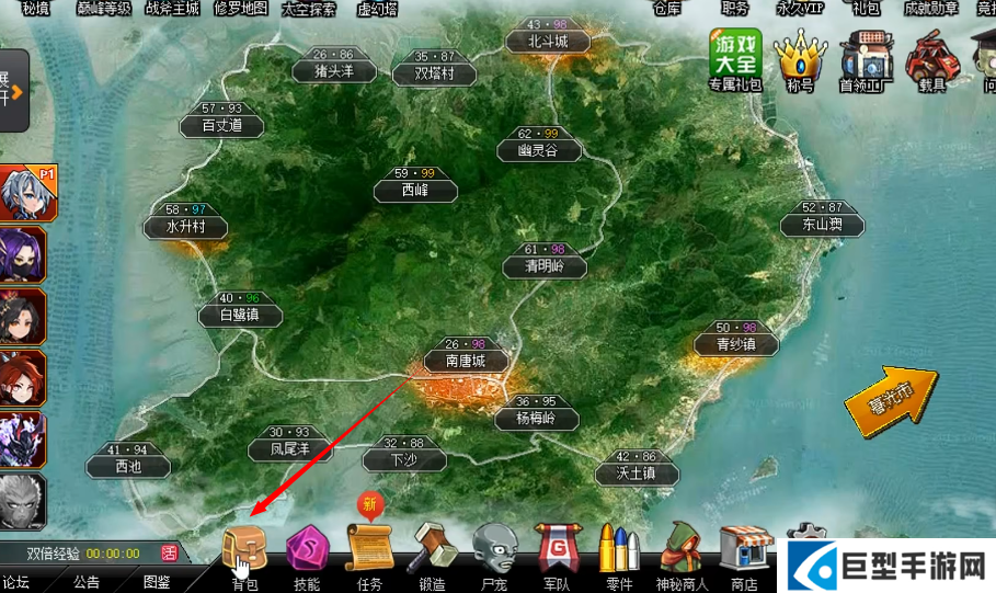 2、进入游戏界面之后,点击下方的“背包”