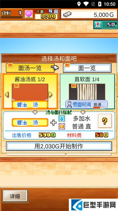 5、有客人店面的时候就需要你选择汤和面制作出客人需要的面,选好之后点击“制作”。