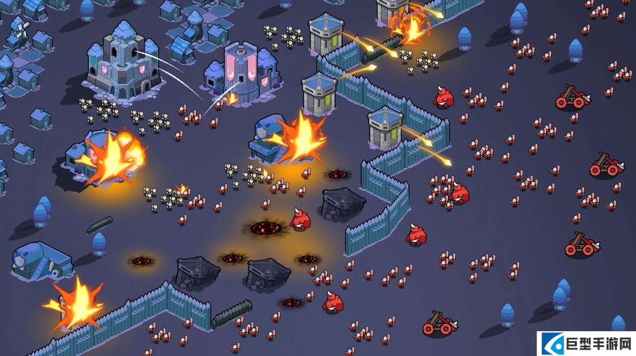 4、夜晚来临时,玩家需要迅速部署防御,选择合适的战术与敌人展开战斗,确保王国的安全。