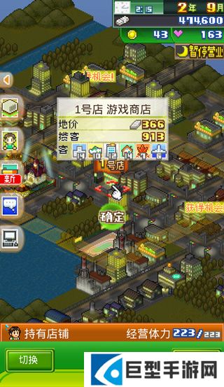 游戏最初只能选择三种商店形态,2号店开张之后开放其他五种,经营权可在【行动】—【购买权利】中购买。