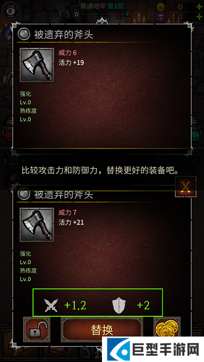 4、比较攻击力和防御力,替换更好的装备吧