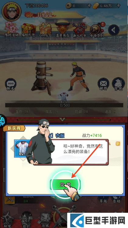 3、击打木桩还能爆装备,穿戴上可以提升战斗力;