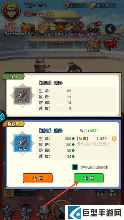 4、还可以更换更强大的稀有武器,之后可以将普通武器出售获得奖励。