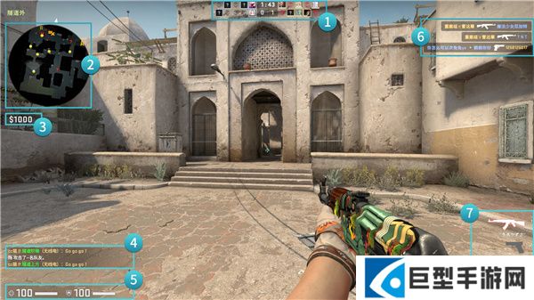 上方文字显示地图点位,在游戏中和队友汇报敌人点位往往能带来胜利。