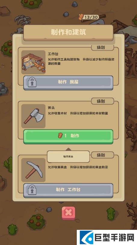 2、刚开始时,制作基础工具非常重要。石斧、石锤等工具可以提高资源采集效率,帮助你更快地进阶。