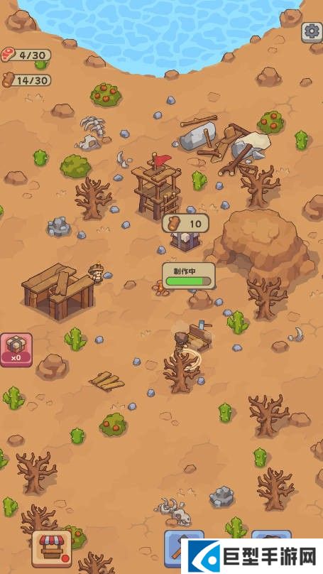 1、游戏初期,最重要的任务就是采集木材、石块和食物等基础资源。利用这些资源制作工具,开始你的生存之旅。可以砍树获得木材,挖矿获取石块,还能通过狩猎或者采集食物来保证食物供应。