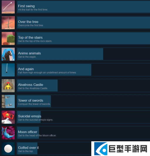游戏中所有的成就如图所示,需要达成特定条件才能解锁: