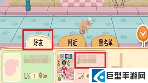 6、在此界面,点这些圈形能够互相的进行摆手和摇尾,还能送气球给它,并结伴同食。