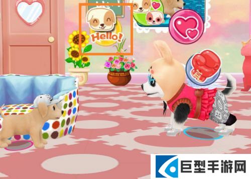 5、进行访临后,点触小狗的形廓,顶处会显露这样的圈钮,能使它们一块完成很多动作哟。