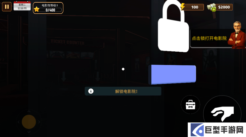 5、首先点击锁打开电影院;