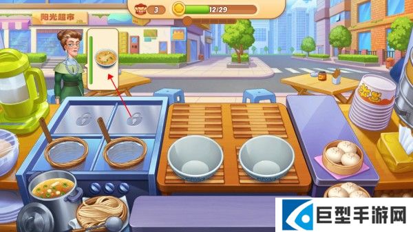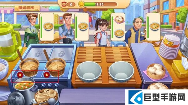 3、注意火候,当食材制作完成时,点击食材捞出,再点击食品即可给有需求的顾客