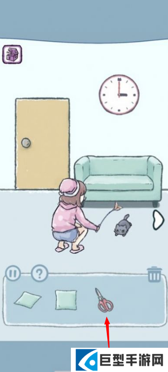 2、使用在场景里收集到的道具来逗猫猫
