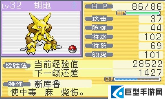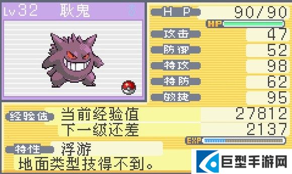 耿鬼: 胆小性格 Lv32正常通关打怪升级