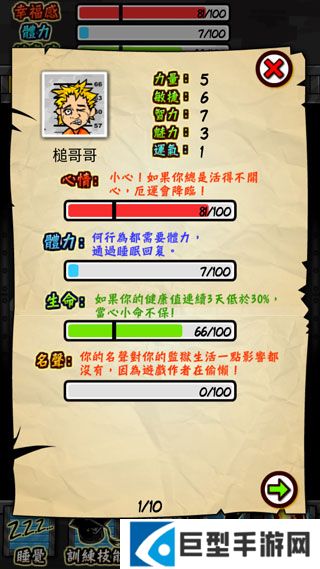 4、点击查看犯人信息,你可以看到角色各项属性,要时刻关注这些,以免角色死亡;