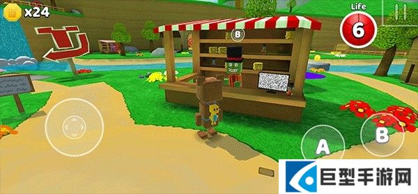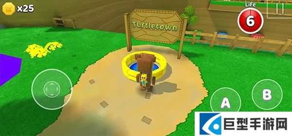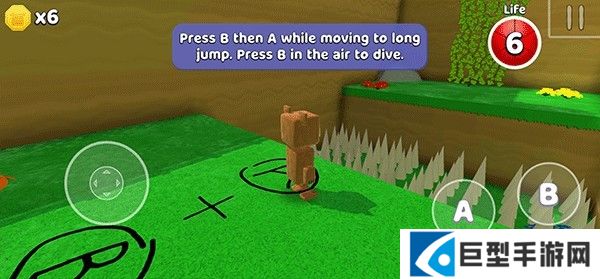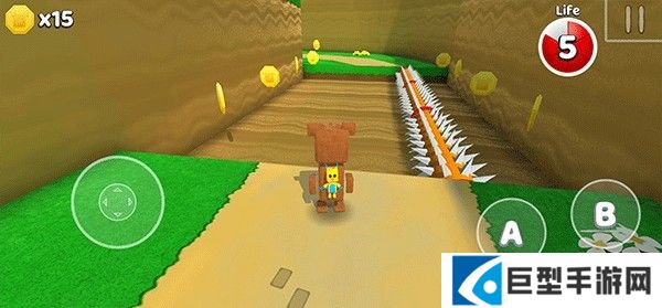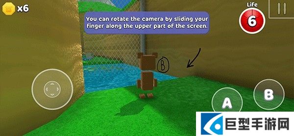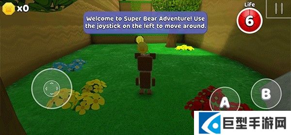 2、左下角轮盘按钮控制超级熊自由移动,右侧屏幕滑动旋转视角,正常情况下A跳跃,B攻击。