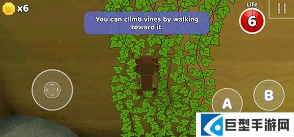5、靠近树叶藤蔓,左下角按钮向上可以控制熊熊向上爬。