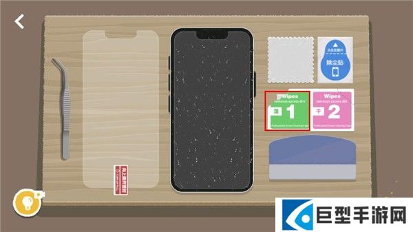 4、接下来换上绿色的湿纸巾进行第二次深度清洁,再用粉色的干纸巾擦干屏幕。湿擦与干擦配合使用,可以让屏幕达到完美贴膜状态。