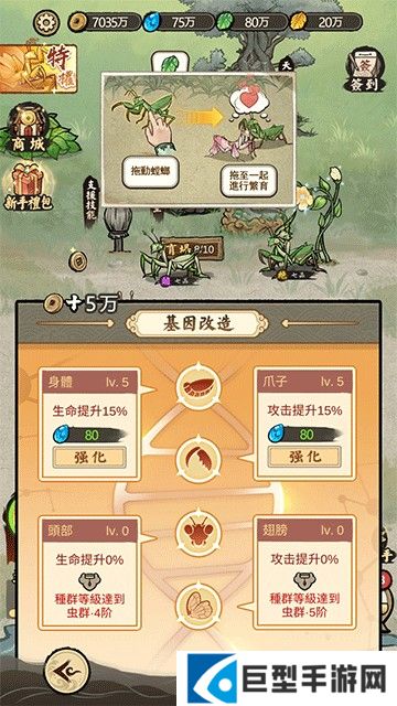 3、能够对螳螂进行升级和基因改造,让自己的螳螂能够有更大的战斗力。