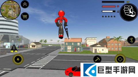 左侧移动、加速,右侧绳索,攻击(跳跃),跳跃,右上侧的武器更换以及血量、经验的显示都实时更新,一览无遗,凭借着大家自由的玩法,与其他帮派的人物进行交火,期间**能够获得经验,杀多了会产生星级,**和其他附近角色会特殊照顾你对你展开火热的进攻,而如何存活,如何将其他人物击杀则是你所需要完成的任务。